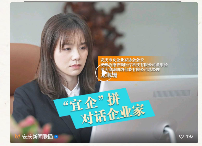 3月27日的“宜企”拼 对话企业家,我们走进宜秀经开区,来看记者与安庆市女企业家协会会长、安徽迈德普斯医疗科技有限公司董事长、betway必威登陆 总经理龙淑珊的对话。