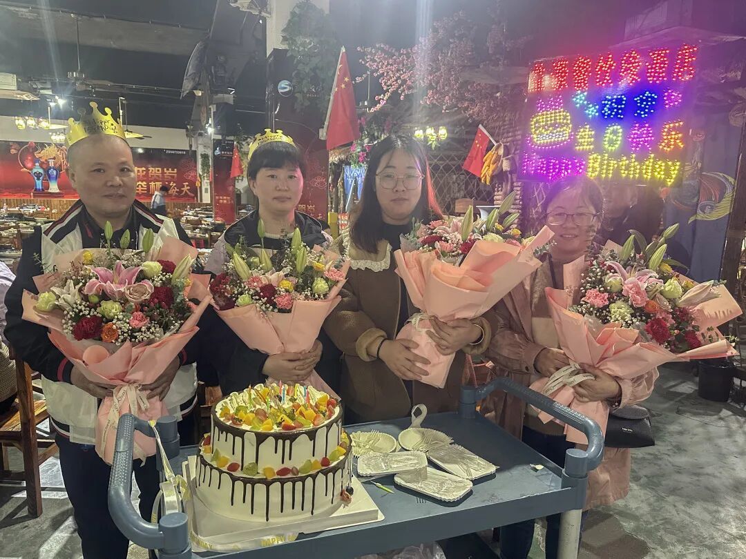 晚宴期间,公司为本月过生日的同事举办了一场温馨而难忘的集体生日活动。活动现场欢声笑语,洋溢着浓浓的温情,让员工们在繁忙的工作之余,感受到了这个大家庭的关怀与温暖。